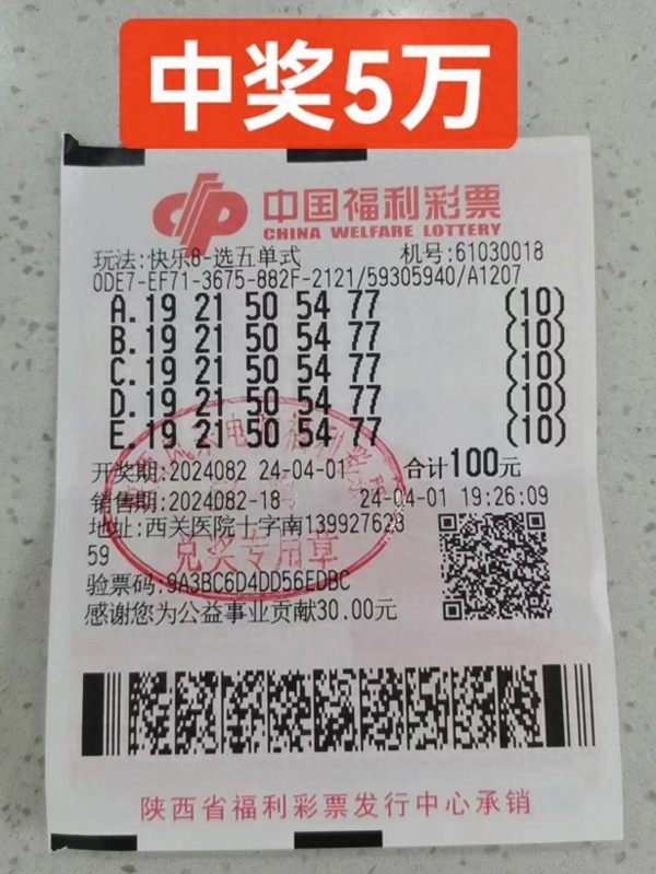 大奖得主王先生(化名)偏爱快乐8,选五单挑一注,打了50倍,拿下5万元。