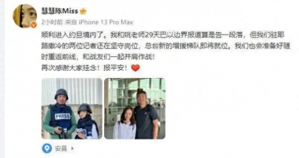 目前,记者们已撤出了巴勒斯坦区域,这个消息让很多国人悬着的心放下了!