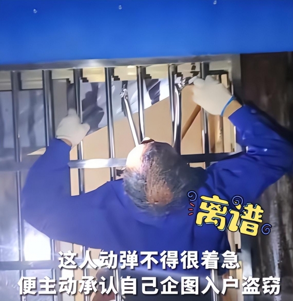 结果,他选择了一个家庭的防盗窗作为"办公地点",还没开始干活,就在窗户上卡住了。
