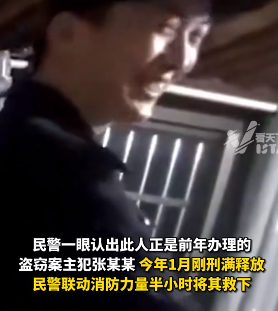 家里的主人沈某一看到自家防盗窗挂着一个小偷,又惊又气又觉得好笑,赶紧报了警。警察来了一看,这不是老熟人张某某吗?