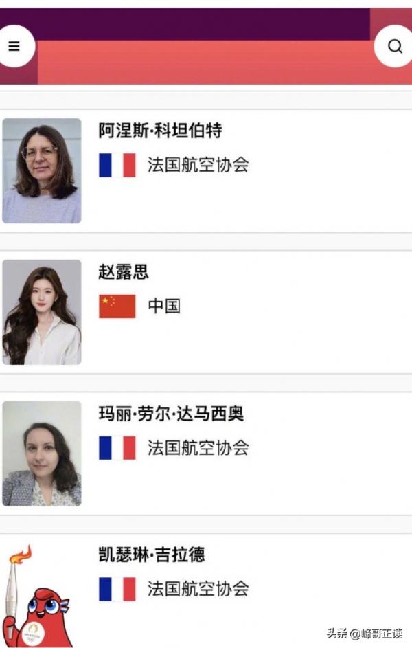 5月9日奥林匹克官网上出现鲜红的小国旗,长发飘飘的赵露思在一众外国美女中格外显眼。