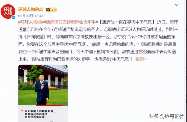 毕竟康辉可是体育赛事主持人出身,北京冬奥会、杭州亚运会中都有他的身影。