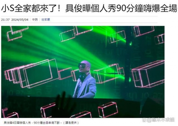 5 月 4 日,具俊晔预热了好几个月的台北 DJ 秀终于正式开启了。当天不止小 S 全家到场支持,大小 S 圈内的一应好友范晓萱、范玮琪陈建州夫妇、王力宏等都悉数亮相,给足了具俊晔排面。