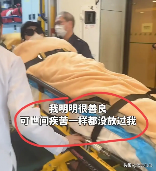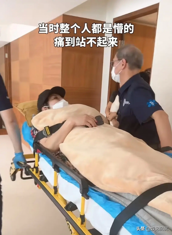 可以看出,向太躺在救护车上时,已是满脸的疲惫,身体的疼痛,也导致表情看起来很是痛苦。