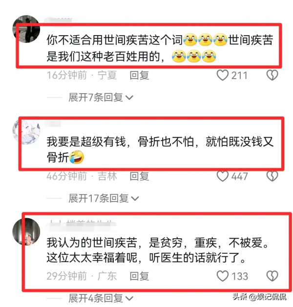 不管怎么说,祝福向太早日康复!虽然她说自己是尝尽了人间疾苦,引起了网友很大的不满,但向太确实是一生坎坷,年轻时候患白血病,后面还有心梗,现在腿又摔了,这么说起来,好像也就说得过去了。