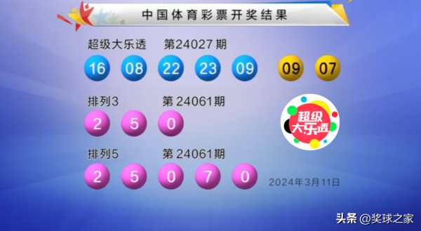 24027期大乐透中奖结果:一等奖开11注、花落10省,其中6注699万,追加5注1258万,广西中追加2注。24027期大乐透开奖号码:前区"08.09.16.22.23"+后区"07、09"。前区号码偏小,空出三区。后区由"全偶号"变"全奇号"。
