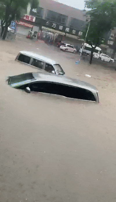 积水已几乎没过小车车顶