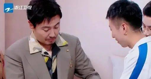 在场男嘉宾都一脸心照不宣开始哄笑,金晨和周也两位女嘉宾的表情却有些尴尬,但也只能配合着笑一笑。