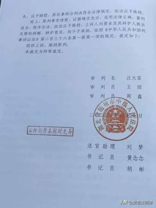 据悉,司法机关此前指控,刘爱业身为随县特校校长,多次在校长办公室及学生寝室,抚摸、揉捏数名未成年学生的胸部等隐私部位,已经构成强奸罪。在二审庭审过程中,刘爱业始终不承认自己涉嫌强奸,不过案件二审维持原判。