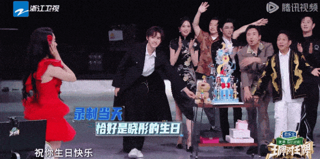 而就在这时,大屏幕却开始放出一段关晓彤的短片,嘉宾们洋溢着笑容推着生日蛋糕上台,这才揭晓,刚才的种种冲突是为了给关晓彤庆祝生日而设计的"整蛊"。