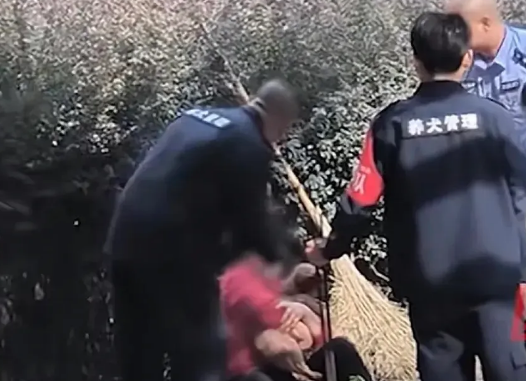 这只狗是一位老人的宠物,老人紧紧搂着它,放声大哭,并坚决不让执法人员带走。