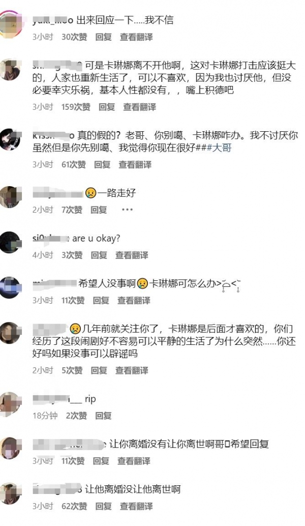 粉丝们纷纷在评论区发声哀悼,还有网友写道:"让你离婚,没让你离世啊,哥,希望回复"