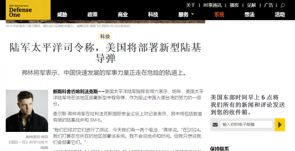 弗林宣称,美国将在亚太地区部署包括战斧和SM-6在内的新型中程导弹,以"阻止中国入侵台湾"。