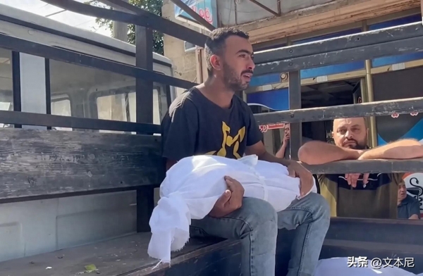这位加沙小哥抱着孩子的遗体眼泪已经哭干了,身前还放着家人的遗体,就在炸弹落下的一瞬间,三个亲人就这样离开了,他们犯了什么错呢?