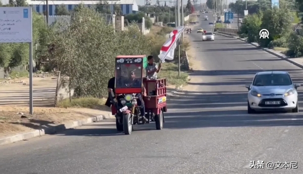 有能力离开加沙的人已经开着车上了路,几乎每一辆车上面都坐满了人,甚至有些人没地方可坐,直接坐到了引擎盖上面。