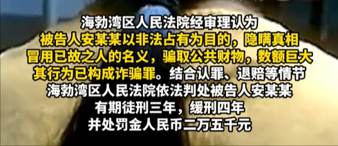 经法院审判:妹妹安某某构成诈骗罪,被判处有期徒刑三年,缓刑四年,并处罚金二万五千元。