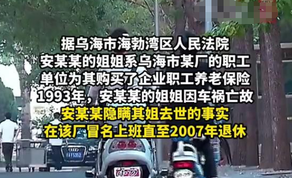近日,一个关于姐姐车祸去世,妹妹冒充其上班并冒领退休金近40万元的新闻冲上热搜!