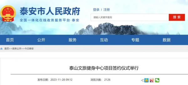 据泰安市人民政府网报道,11月27日上午,泰山文旅健身中心项目签约仪式成功举行。泰安市委书记、市人大常委会主任杨洪涛亲临现场并发表了重要讲话。此外,北京寰聚商业管理有限公司的董事长王思聪也出席了此次活动。