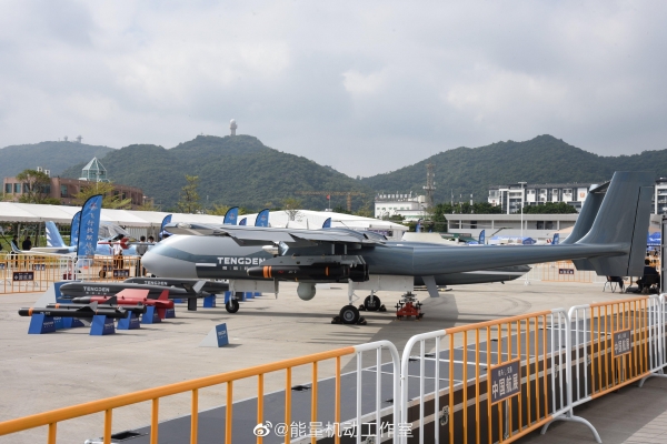 在该报道的开头,双尾蝎无人机就在拖车的拖拽下驶出了机库,机翼下挂载4枚空对地导弹,和两枚相当神秘的武器,此前从未见过这种"大杀器",关心我国军武的朋友一定想起来了一个事情,与去年我国在珠海航展上展出的防区外攻击武器非常相似,不过当时展出的这种武器体积很大,一看就是为轰炸机和重型战斗机准备的,这次体积却很小,到底是什么武器?