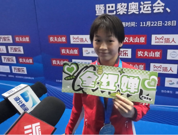 全红婵举着粉丝应援手幅。图/九派新闻 周雨禾