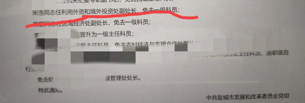 据公开资料,从毕业后宋处长作为选调生就一直在盐城发改委工作。2020年,在毕业6年后由一级科员升为副处长,晋升副科级干部。