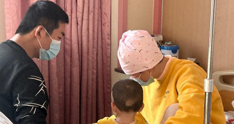 "打针会哭一儿,但逗一下就笑了,跟我们几个护士也很亲。"提起好好,护士长黄艳琴印象深刻。