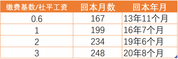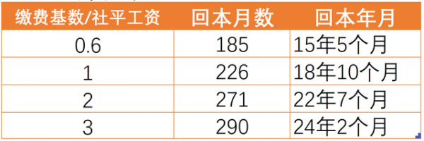 ①缴费基数越低,回本时间越短,最短可不超过12年,最长则可能超过24年;