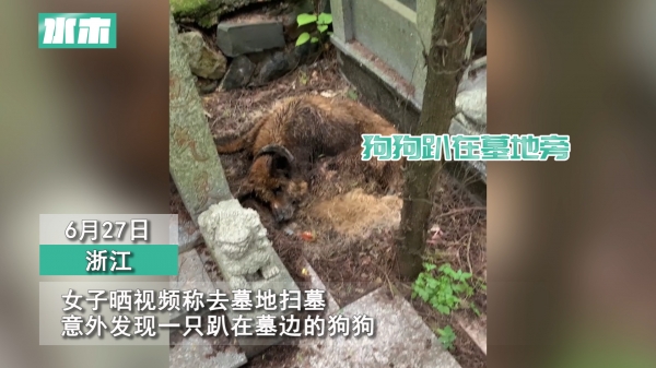 6月27日,浙江衢州,一名女子来到当地的陵园,给过世的亲人扫墓,发现墓旁边卧着一只狗子,走近一看,发现狗子已经去世了,看样子去世没有太久。