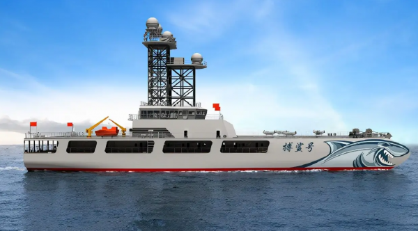 搏鲨1号是在2021年11月下水,2022年12月在海军某试验训练基地服役,搏鲨1号在训练中模拟假想敌,操控蜂群无人机进行饱和攻击或实施电子战,它的前甲板可停放多种垂直起降无人机,配合高达50米的指挥天线,搏鲨1号展现出的无人机指挥和干扰能力。
