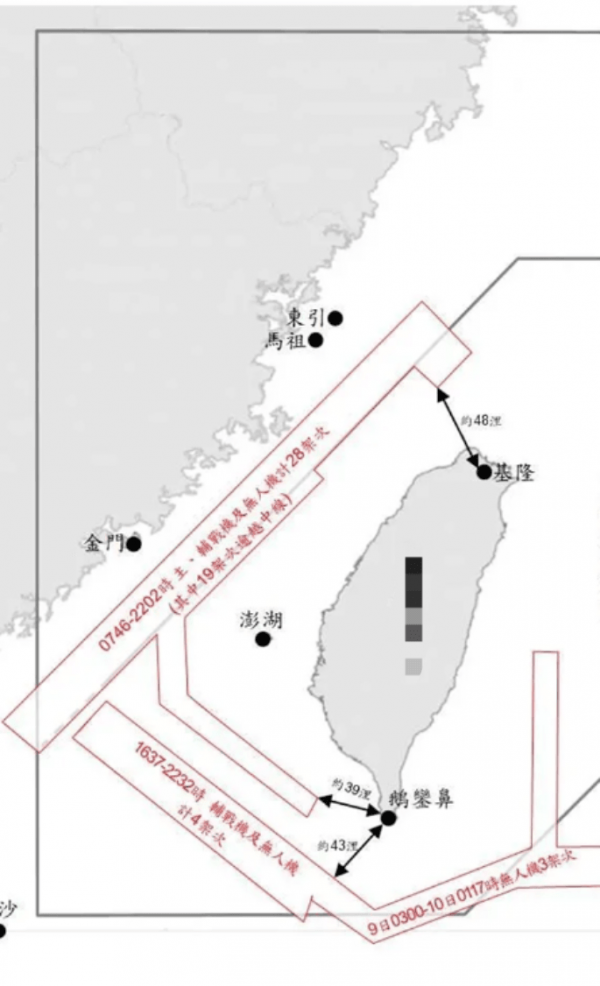 (7月10日,台军监测到解放军37架次战机出动,全方位包围台岛)