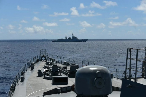(海军桂林舰阻拦日本海自村雨舰抵近监视山东舰远洋训练)