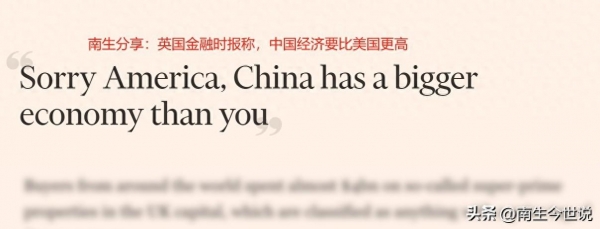 英国金融时报在一篇名为《对不起美国,中国的经济比你们大》的文章提到:不按照人民币与美元的市场汇率换算,改为参考一篮子商品在中美两国境内的需要支付的金额数量差异来重新换算。