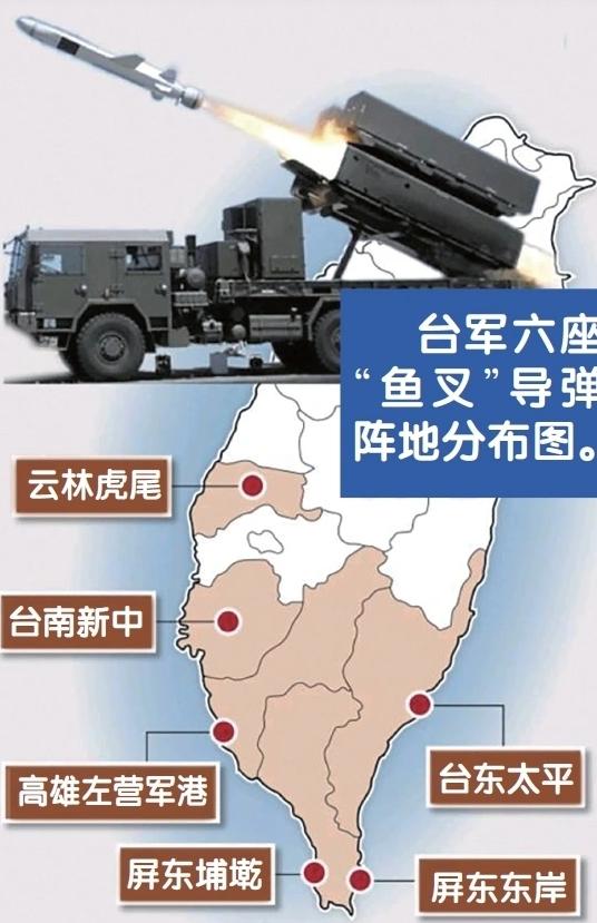 同时,台军还计划将未来5年内,生产的近千枚反舰导弹,都配备给该部队,让该部队部署全岛,将台岛打造成一个"刺猬岛"。而采购自的美国鱼叉反舰导弹,台军不仅打算配备给该部队的导弹发射车,进行机动部署,还打算在云林虎尾、台南新中、高雄左营军港、屏东埔墘、屏东东岸、台东太平,建造6座鱼叉导弹岸基导弹阵地;而在新北、嘉义、桃园等9处地点,台军则打算建造9座"雄风"导弹发射阵地。