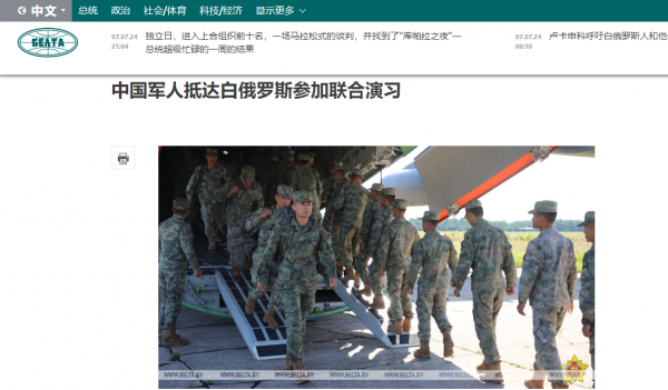 【白俄罗斯国家通讯社报道称,中国军人已经抵达白俄罗斯】