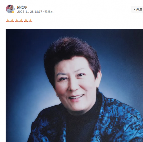 随后著名歌唱家,腾格尔也在自己的社交媒体发文悼念德德玛。