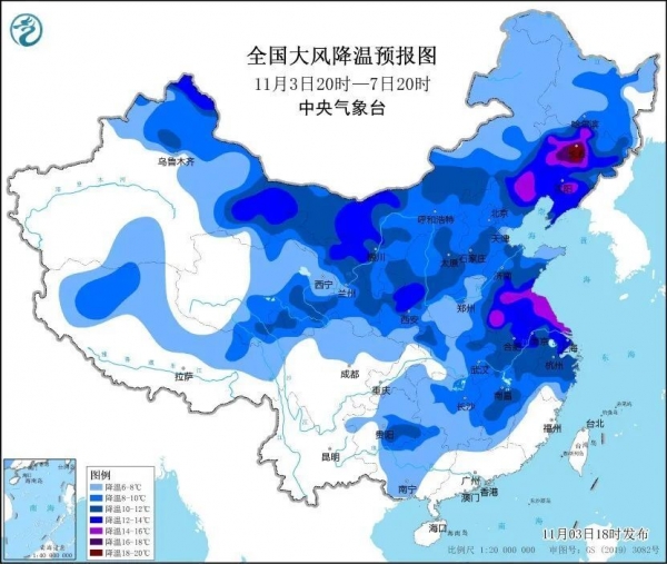 3日傍晚,中央气象台发布今年下半年首个寒潮预警!