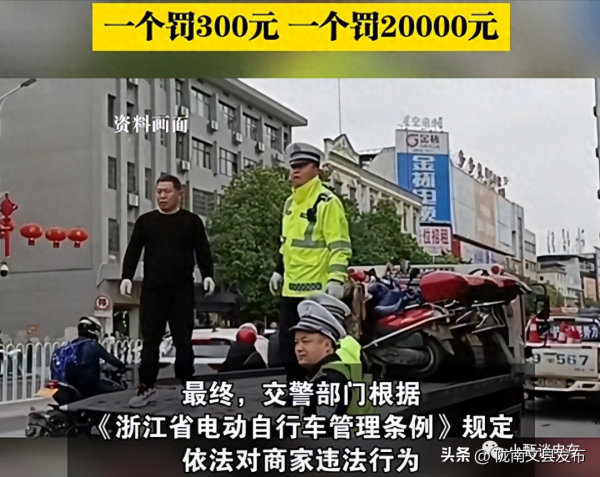 浙江瑞安交管人员在路面执勤,发现有车主的电动自行车速度过快,经验测车辆最高车速接近30km/h。而根据《电动自行车安全技术规范》,车辆最高车速不得超过25km/h,所以对该车主处以300元的罚款。并且执法人员根据线索找到商家,按照违法"提速"给予2万元的罚款。