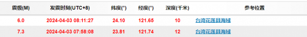 中国地震台网已经官宣台湾的花莲县附近海域发生的地震,且在7.3级震动后又有一次余震发生,8点11分发生6.0级地震,震源深度10千米。