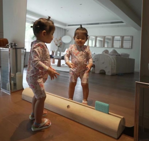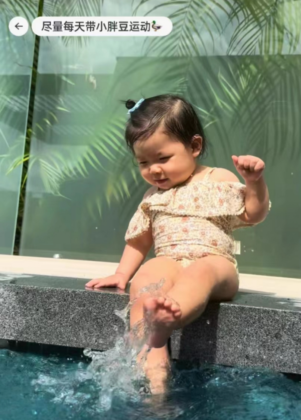程晓玥早前在澳洲的时候就非常喜欢带着女儿游泳,只不过那会儿的胖豆比现在要小一圈,个头也矮很多。如今几个月过去,胖豆宝贝一下子就出落成了比同龄宝贝要大只一些的小高个萌宝了。