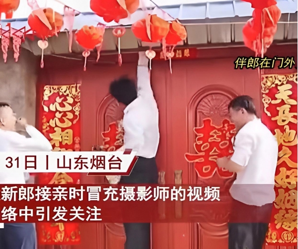近日有网友分享了一段有趣的视频,一名新郎为了顺利接走新娘,特地扮演成摄影师,成功混进门,当他进入新娘的闺房,摘掉伪装,屋里的伴娘和新娘都傻了眼,新娘更是夸赞新郎聪明:三十六计用得好!