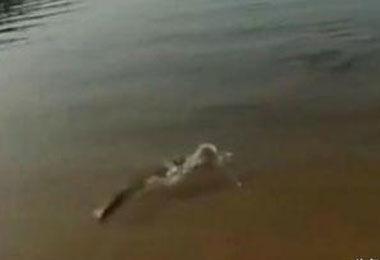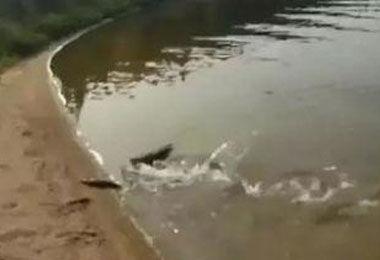 原来是后面的大鱼比较凶残,追着刚放生的鱼儿要吃了它,鱼儿这是在逃命呢,只是刚好是女子的方向,女子赶紧的把鱼儿抓回来,接着就不知道该怎么办了,带回去养着吧,谁知道它还能在自己手上活多久?放生吧,也很担心水里那么多的凶残的动物正在等着它,真是烦恼啊!