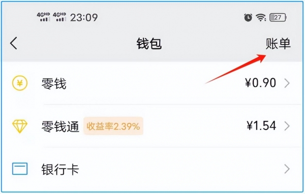 1.我们打开手机微信以后,然后找到微信钱包功能,在微信钱包页面中,我们点击右上角的"账单"功能,这个时候点击进入。