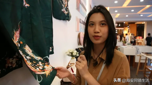来自越南的南京大学留学生何氏金银一直都很喜欢中国的文化,在非遗工坊看到手工刺绣后,何氏金银觉得十分惊艳。"这些都是我在电视里才能看到的东西,这些刺绣图案出现在中国传统服饰上真是太漂亮了。"亲眼看到非遗工坊的老师们一针一线绣出了栩栩如生的荷花,何氏金银连连感叹:"神奇""生动"!
