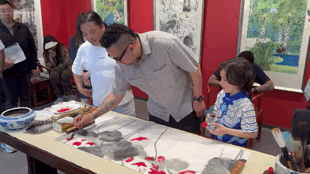 来自委内瑞拉的视觉艺术家罗纳德此行与妻儿一同来海参观,从事艺术工作三十多年的罗纳德在吴田玉美术馆流连忘返,"他的绘画细节十分丰富,笔触也很细腻,能让人切实感受到生命的伟大。"参观现场,罗纳德和外籍友人们还与吴田玉共同完成了一幅绘画创作。罗纳德表示,这次参观给了他莫大的灵感,下次,他还会带上全家再次来海,感受这里浓厚的人文气息。