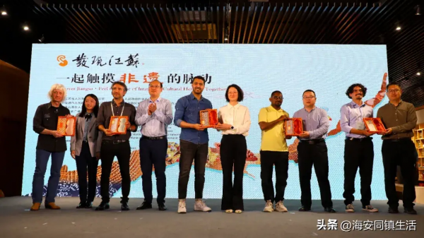 来自南通、宿迁、泰州、连云港、常州市有关承协办单位代表为外籍友人赠送来自海安的非遗礼品,传递海安人民的心意。
