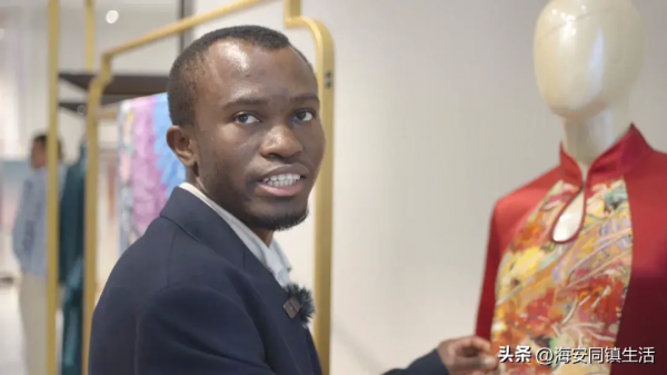 刚果(布)籍学生李党现在是南京大学在读博士生,这是他第一次来到海安,在鑫缘茧丝绸集团展厅,他被丝质旗袍上的扎染图案深深吸引,"这件旗袍给人眼前一亮的感觉,有机会我一定要去了解下,看似简单地扎捆布料、在水中浸泡,怎么就能生成这些鲜亮的图案。"