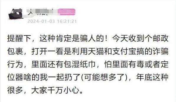 关键是,当收到配送包裹的通知信息,要仔细核对,发现并不是自己网购的,可以向快递公司表示拒收。如果是已经送到快递存放点的,发现不是自己的网购包裹,不必打开,天上不会掉馅饼。