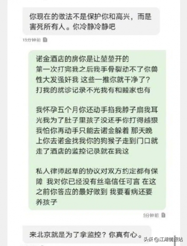 魏嘉曝光和高亚麟对话截图中包括"怀孕五个月时遭受掐脖、掌掴、强行发生关系"等令人震惊的细节。