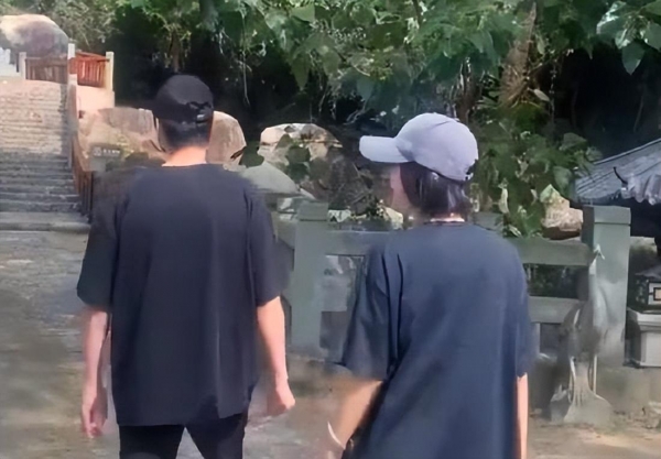 想象一下,你在海南度假,突然发现了两位明星一起游玩,而且他们还穿着相似的衣服,是不是感觉到了一丝微妙的气氛?