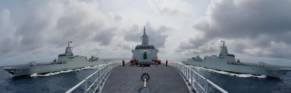 解放军至少5艘055型万吨大驱,以及辽宁山东两艘航母,都已出港执行任务